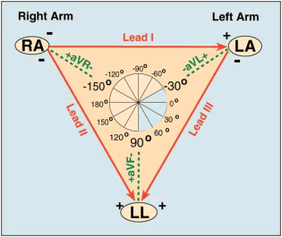 Antes de graficar el mismo, y como para obtener las derivaciones de los miembros los electrodos se colocan en el brazo derecho, brazo izquierdo y pierna izquierda conviene imaginar una persona parada derecha y con ambos brazos extendidos, así, poniendo un electrodo en el brazo izquierdo, uno en el derecho y uno en la pierna izquierda vamos a tener un triángulo imaginario que indica el sentido de la actividad eléctrica del corazón y de este modo graficar las derivaciones de las extremidades.